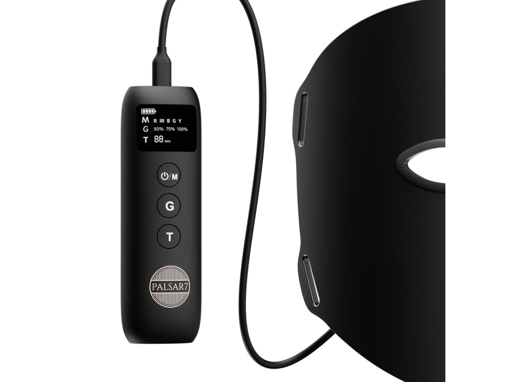 PALSAR7 Nabíjecí LED maska na obličej s 8 režimy světelné terapie napomáhá omlazení pleti, léčbě akné, redukci pigmentových skvrn, zpevnění pokožky a vyhlazení vrásek – a to zcela bezbolestně, bez chemie a z pohodlí Vašeho domova. Fotonová terapie stimuluje kožní buňky pomocí světla o specifických vlnových délkách, čímž podporuje tvorbu kolagenu a zlepšuje metabolismus pokožky.